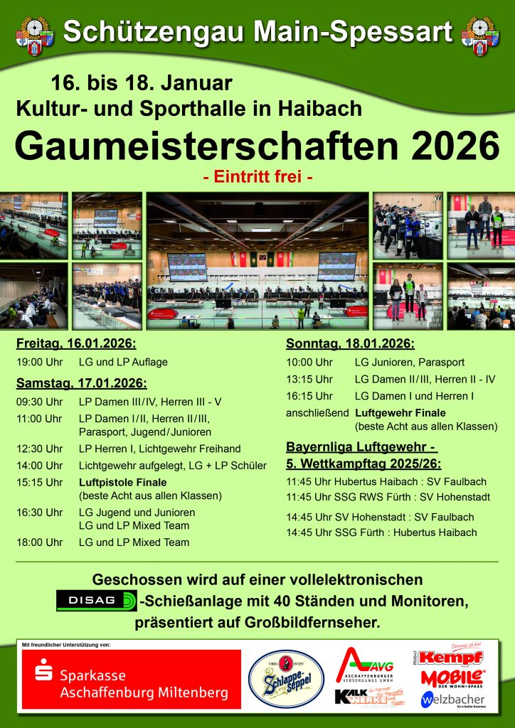 Gaumeisterschaft 2026 in der Kultur- und Sporthalle und Bayernliga-Heimwettkampftag Luftgewehr am 18.01.2026
