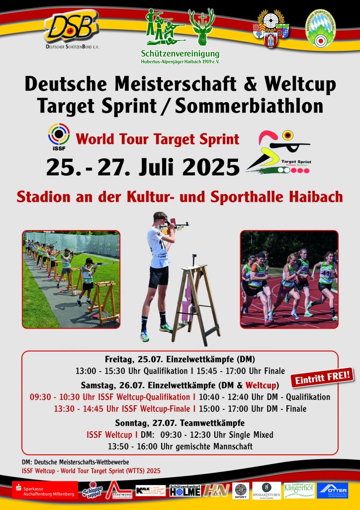 Hallo liebe Teilnehmer und Gäste zur Deutschen Meisterschaft Target Sprint und der ISSF World Tour Target Sprint in Haibach!